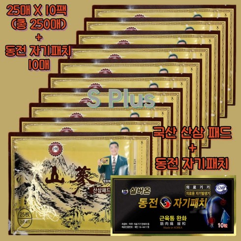국산 산삼 한방 패드 10팩 붙이는 건강 파스 대용량 250매+동전 자기패치