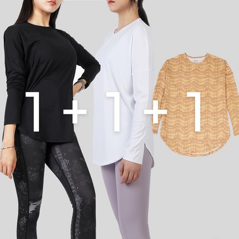 3장세트 긴팔 티셔츠 요가복 필라테스상의 힙커버 롱티 커버업 빅사이즈 운동복