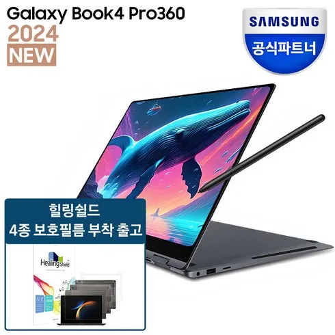 삼성전자 갤럭시북4 프로360 NT960QGK-K71A 힐링쉴드 4종 보호필름 부착 발송 인텔 코어 울트라 7 삼성 고해상도 AI 사무용 대학생 2in1 노트북 S펜 포함, WIN11 Home, 16GB, 512GB, 문스톤그레이