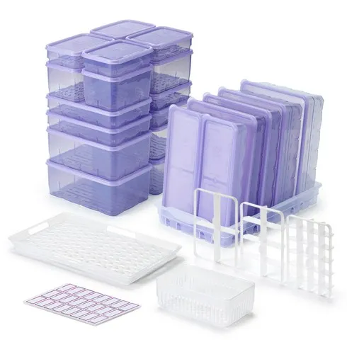 땡스소윤 냉동실 전용 밀폐용기 29p 세트 쿨라벤더, 1세트, 밀폐용기 22종 + 채반 2종 + 칸막이 3종 + 트레이 + 견출지 96p