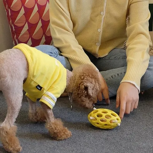 – 공을 굴려 놀면서 강아지가 자극을 받고, 공을 던지면 강아지가 달려가서 운동량을 늘릴 수 있습니다.