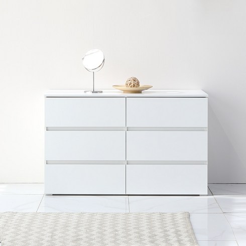 서울경기무료배송 베이직 1200 6칸 3단 와이드 서랍장 넉넉한 수납장 거실장 화장대장 다용도장, 화이트(무광)